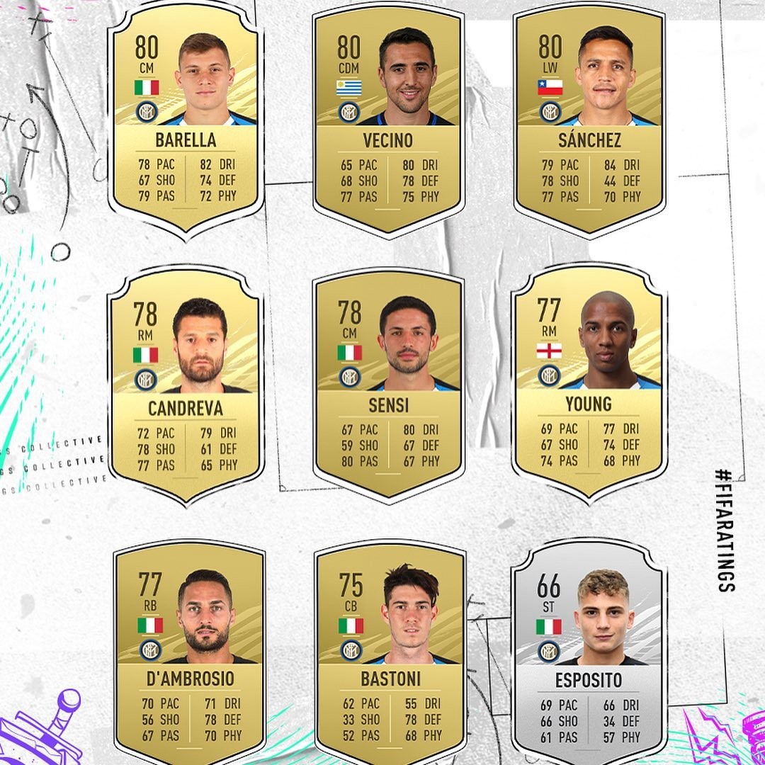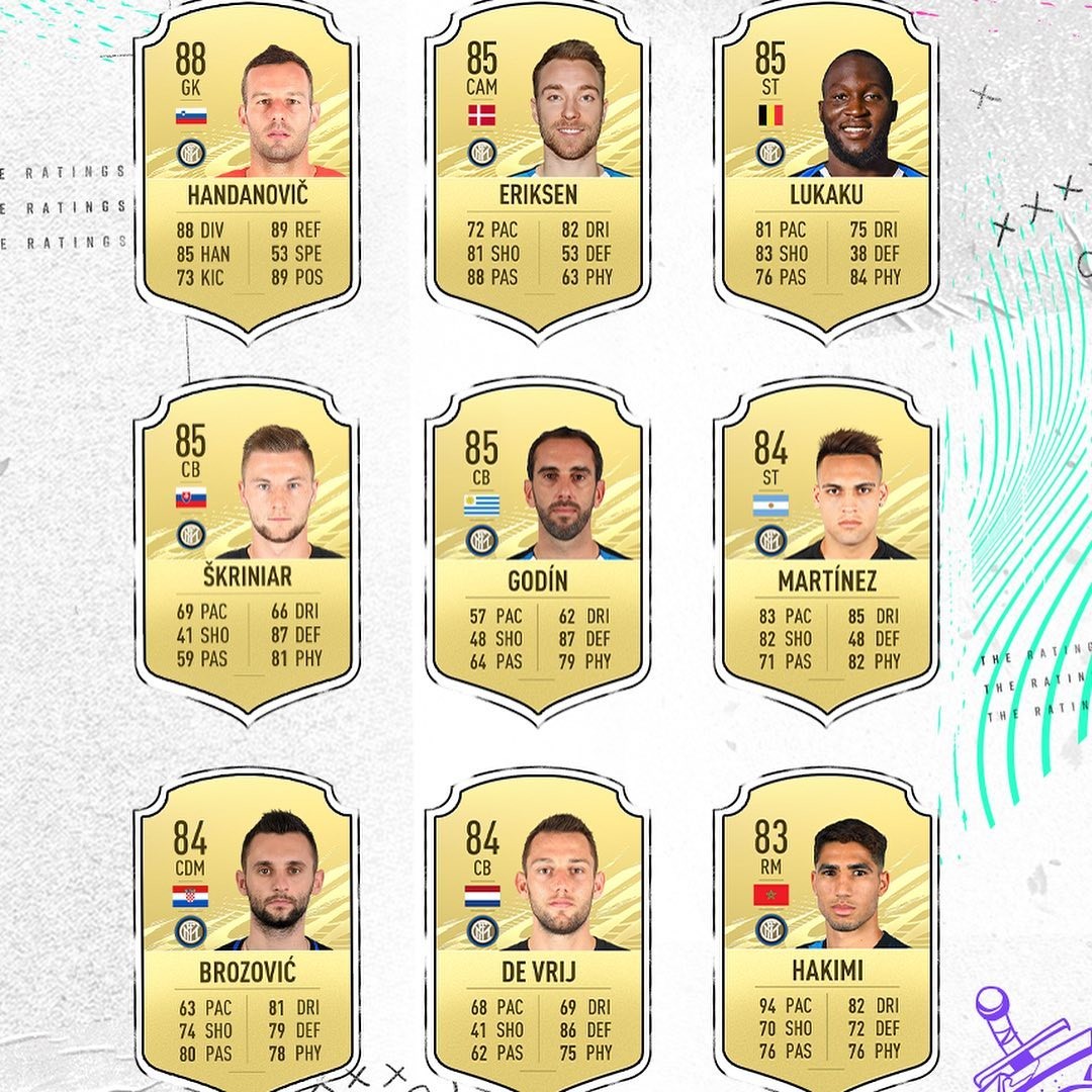 卢卡库、埃里克森、什克里尼亚尔和戈丁均以85分排名队内第二,劳塔罗、布罗佐维奇和德弗赖同样获得了84分,新援阿什拉夫获得了83的评分。