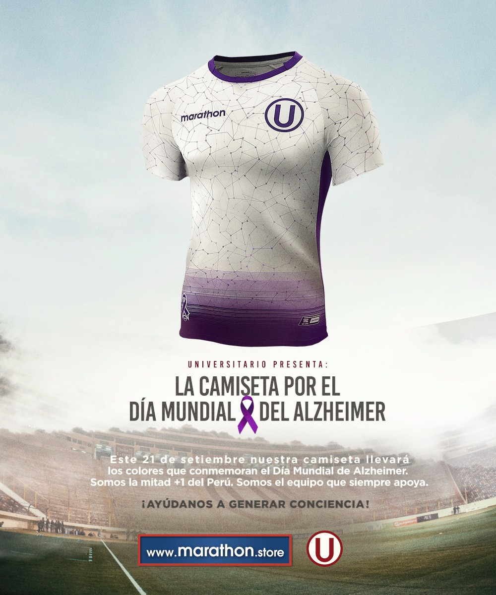 秘鲁利马大学俱乐部与赞助商Marathon Sports共同发布“世界阿尔茨海默病日”特别版球衣。双方希望通过此举让更多人了解并预防阿尔茨海默病(老年痴呆症)。