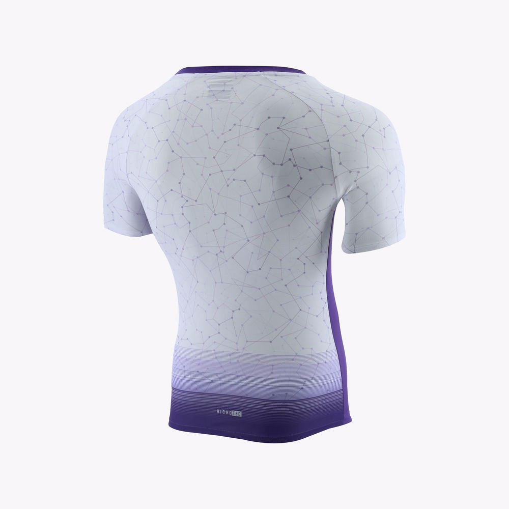 这件特别版球衣以作为俱乐部象征的奶油色为主色,球衣上加入代表这一病症的紫色图案,球衣胸前的俱乐部徽章以及Marathon Sports品牌标识也以紫色沉陷。球衣下摆除了加入紫色渐变图案外,还加入一枚作为预防及对抗这一疾病的紫色丝带徽章。