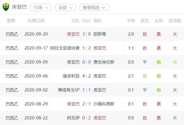 两支球队上个赛季有过2次交手,库亚巴1胜1负,两场比赛都是2-1的比分,两队都守住了自己的主场。