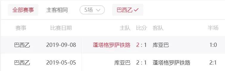 不过那都是上个赛季的事情,从本赛季的数据看,库亚巴的整体发挥要明显强于蓬塔格罗萨铁路虽然主队主场战绩不错,但客队发挥似乎更加稳定,看好客队不败。