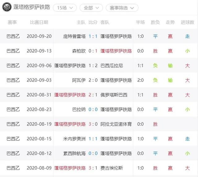 蓬塔格罗萨铁路实力在巴西乙排名中游,上个赛季38轮联赛拿到11胜14平13负的战绩,打进41球丢39球,整体战绩相对一般。从数据看,这支球队不管是攻击还是防守端,都是比较一般的,巴西乙是一个比较偏防守型的联赛,大部分的比赛都是在1-2球之间,蓬塔格罗萨铁路大致也属于这样的球队。