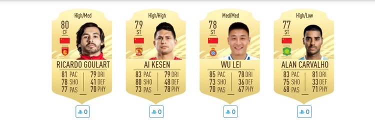 另外几名能力值较高的中国球员是艾克森(79)、阿兰(77)。但目前FIFA 21只公布了能力值前1000名的球员,只有这四名中国球员入选。