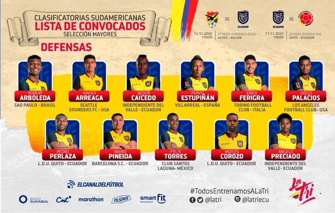 在本月的世界杯预选赛,厄瓜多尔国家队将先后面对玻利维亚和哥伦比亚。