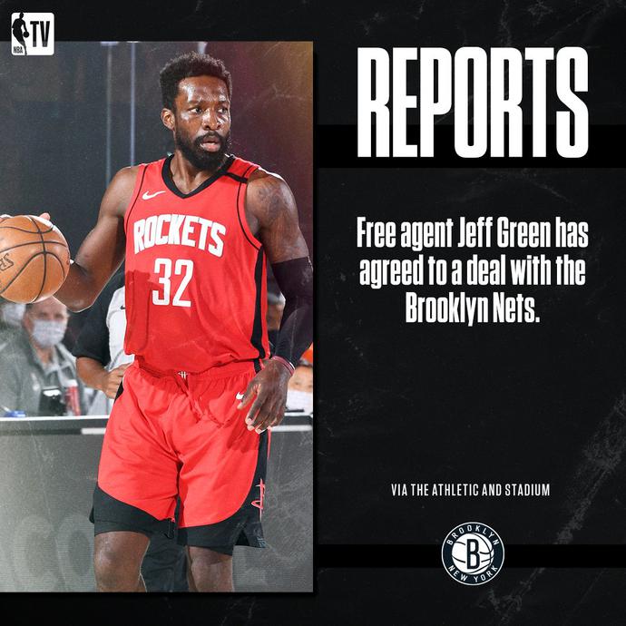 根据名记查拉尼亚报道,杰夫-格林与篮网达成协议,前者将加盟篮网,但合同细节尚未披露。