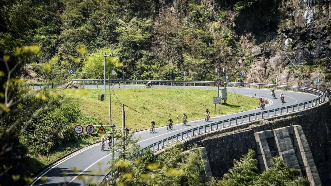此次KOM挑战选定的线路以这个16.18公里长的赛段为基准,其起点是天荒坪镇通往天池景区的第一个发卡弯,终点是景区拱门(也是环太湖赛段的终点)。该爬坡海拔爬升755米,平均坡度4.7%,不算陡也不算长,但足以让爬坡手们施展才华了。