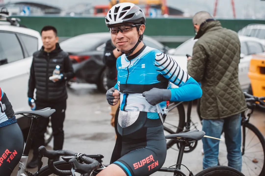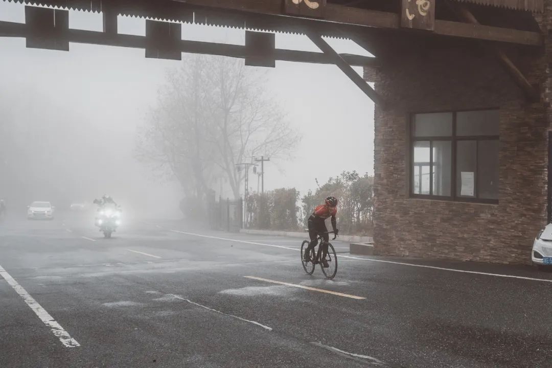 “国产休卡西”——施文通,身高1米96,体重75KG,以爬坡而闻名。面对天荒坪的浓雾,他选择佩戴墨镜出战,单凭此举即可锁定敢斗奖。