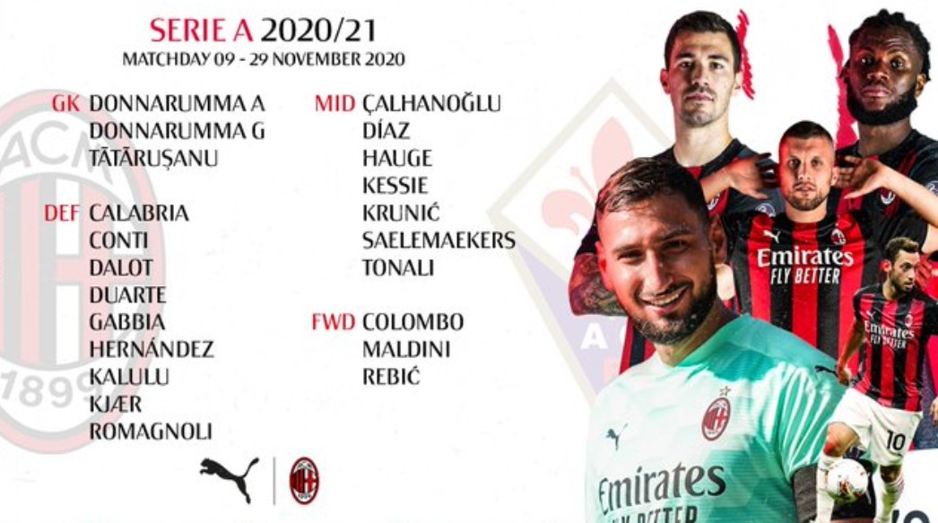 米兰本轮大名单如下: