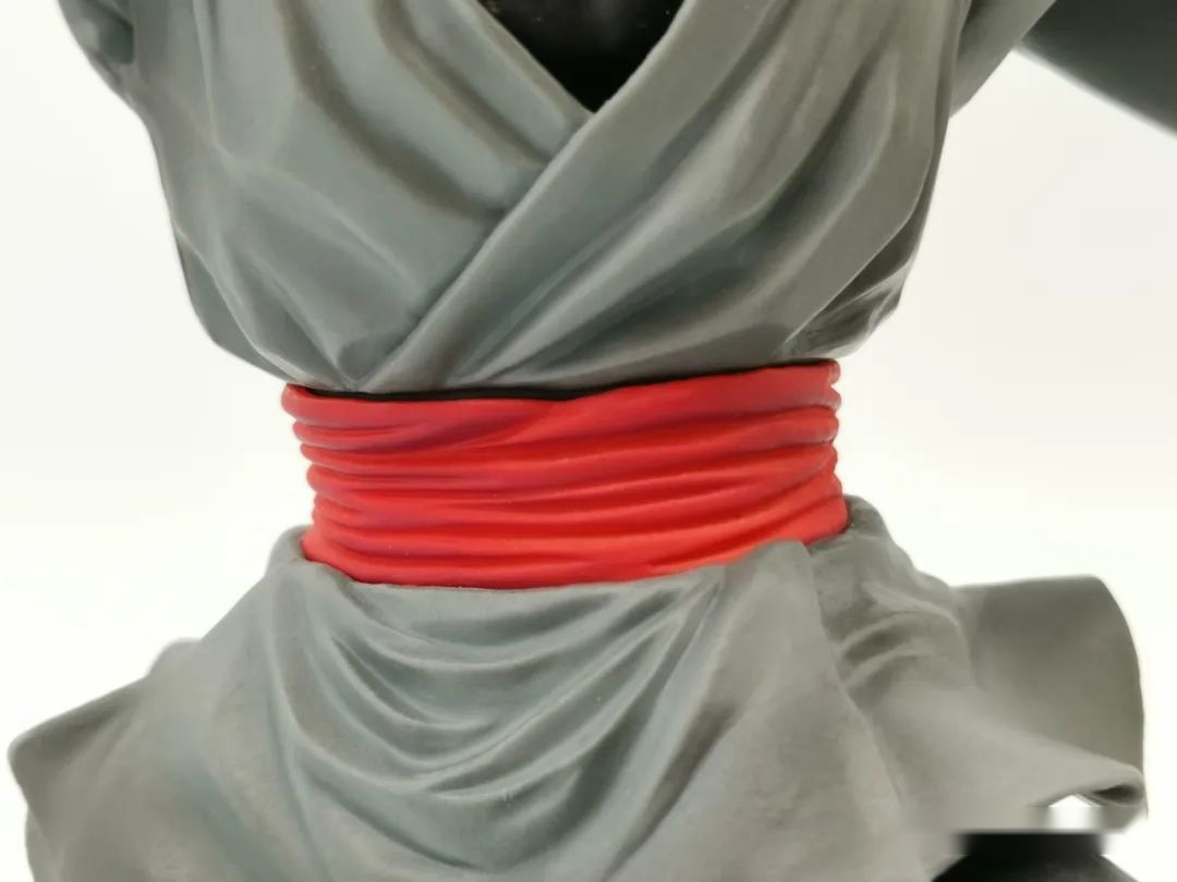 对于这款D赏桃红黑悟空的涂装,很难令人满意。灰色道袍有一些很浅的阴影涂装,而黑色紧身衣、红色束腰基本都没有涂装。