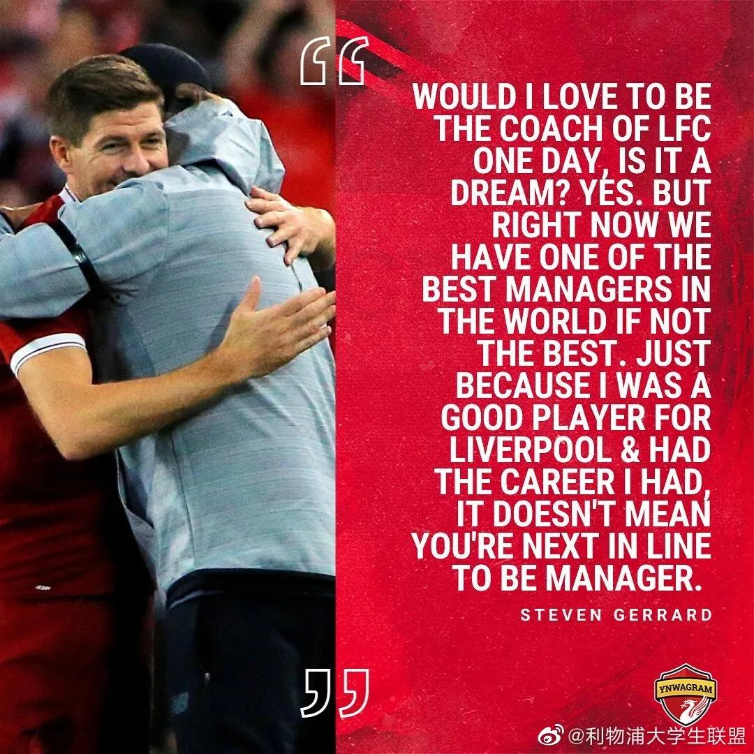 去年年底,几乎所有利物浦球迷都注意到了一个“巧合”,流浪者与利物浦在同一天与各自的教练团队续约,而且新约均截至2024年。那时的克洛普在6月赢得了欧冠,8月收获超级杯,联赛中也处于领先;而杰拉德则刚刚带队从欧联杯小组赛中突围,上赛季又获得了重返苏超以来的最高积分。之前接受媒体采访时克洛普曾表示,此次合约期满后,他会离开利物浦回到德国。至于继任者,克洛普已经不止一次表示:杰拉德。