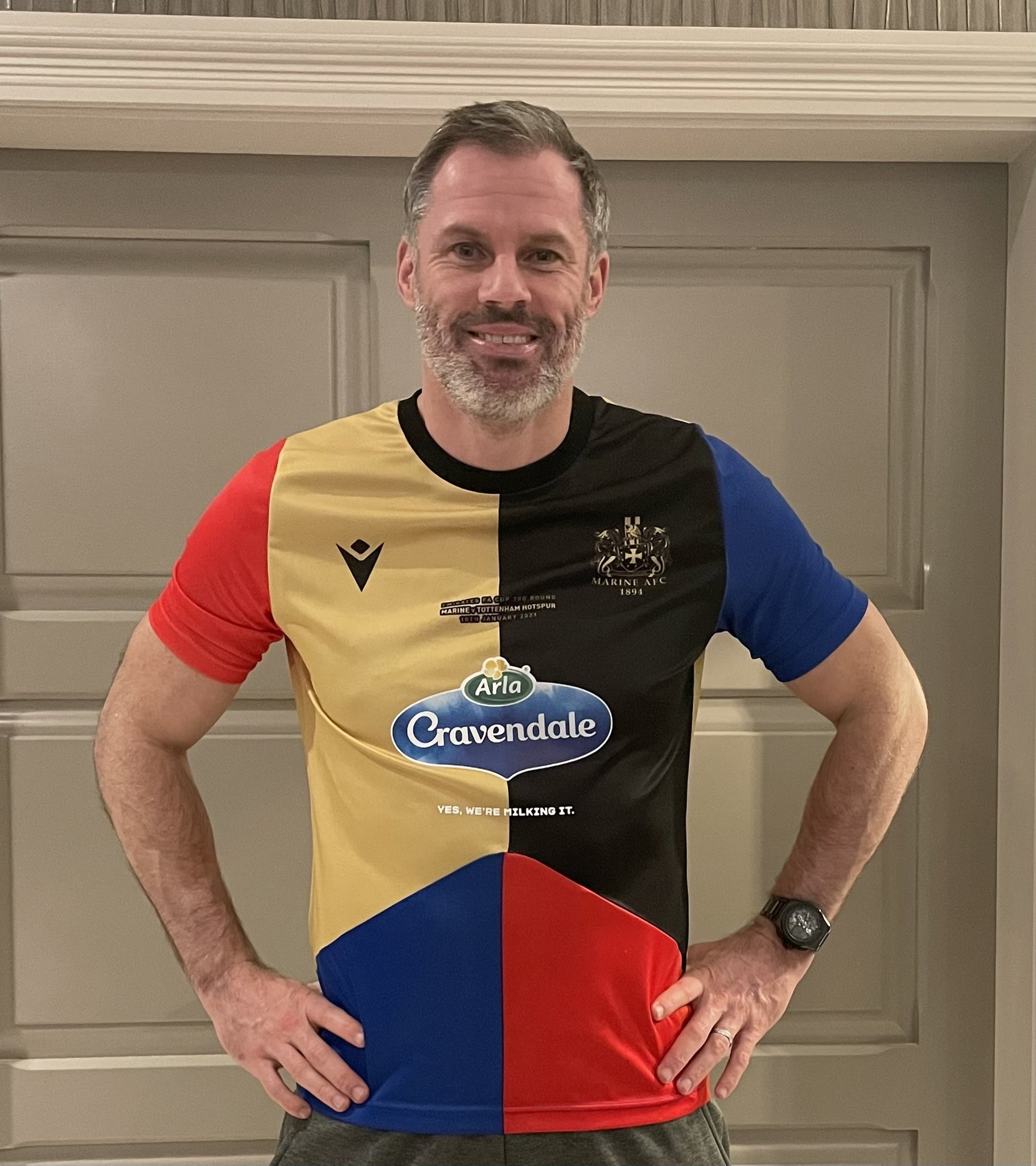 利物浦名宿卡拉格在社交媒体晒出了自己身穿海运联球衣的照片,并写道:“祝你们好运,争取为家乡城市(海运联是一家默西塞德俱乐部)带来胜利。”
