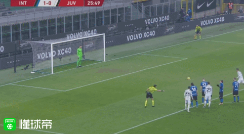 第23分钟,阿什利-扬拉倒夸德拉多,裁判观看回放后判罚点球,C罗主罚命中,国际米兰1-1尤文图斯!