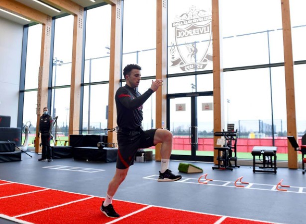 利物浦官网分享了若塔的训练状态,他今天在训练中心继续进行康复计划,他在健身房进行了一些锻炼,然后前往室外球场进行一些跑步训练。