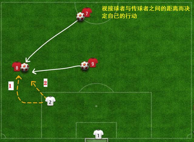 - 视对手接球者和传球者之间的距离决定自己的行动