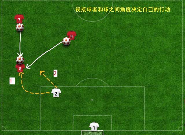 边后卫通过对对方接球者与传球者之间的角度关系做出合适的选择