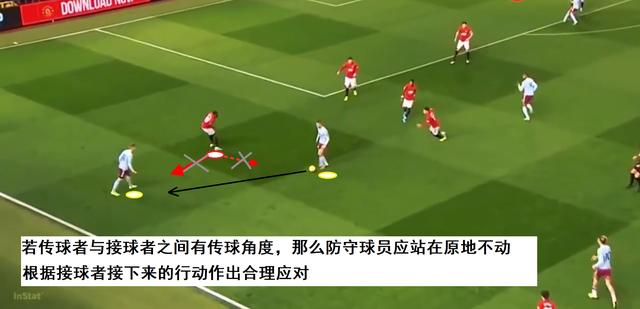 - 视对手接球者与传球者之间的角度决定自己的行动