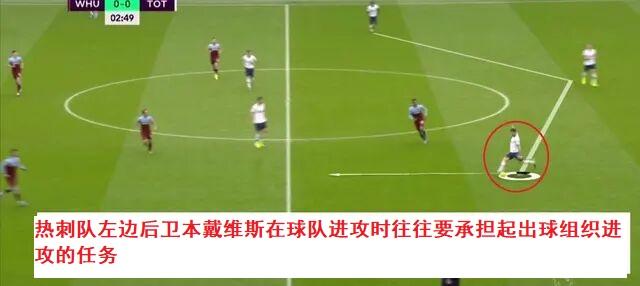 热刺队左边后卫本戴维斯,常常需要承担起球队后场出球组织进攻的责任