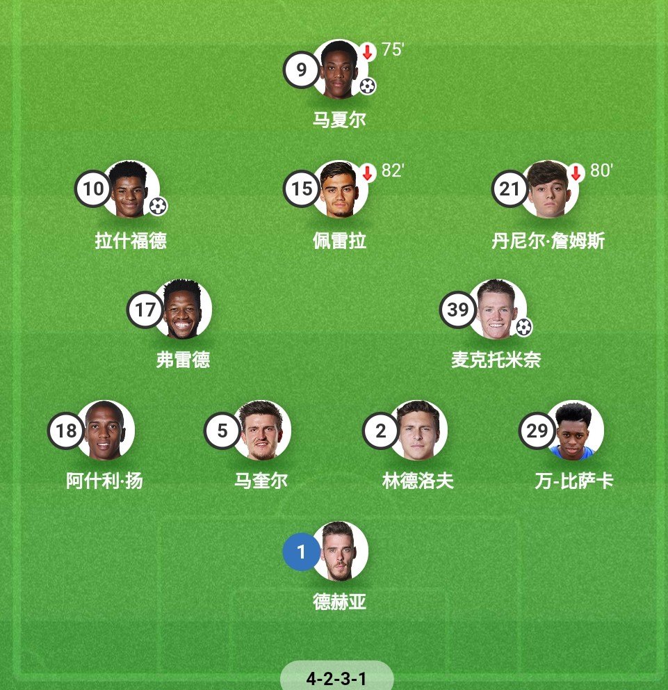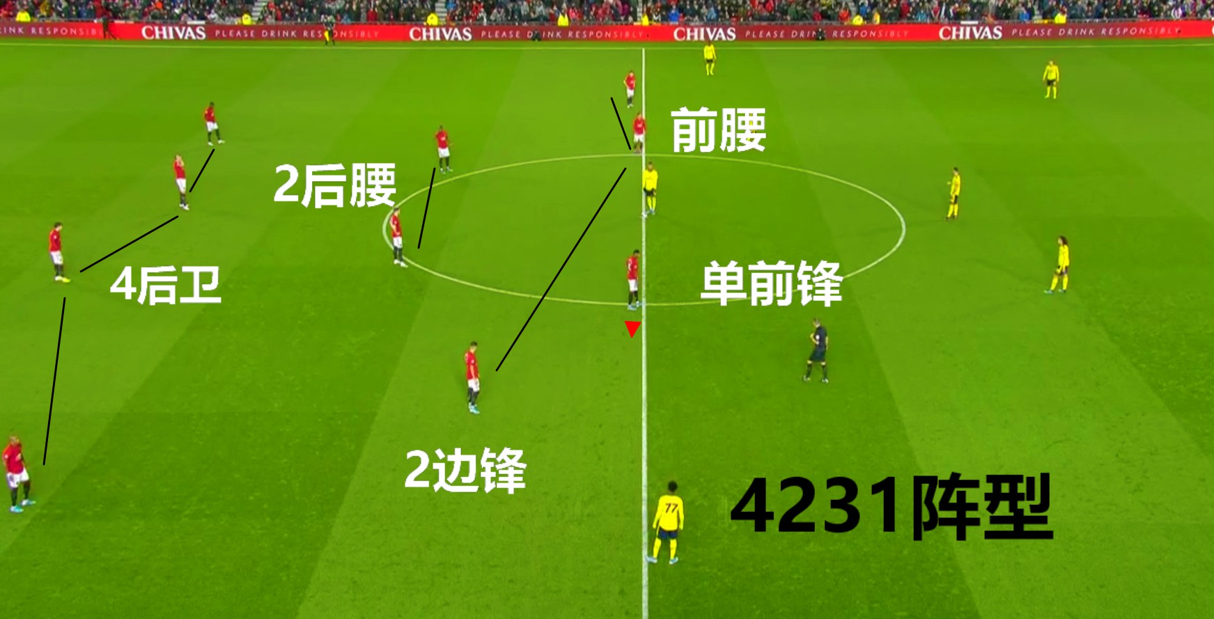 上图所示,为英超联赛第7轮,曼联主场迎战阿森纳时排出的4-2-3-1阵型。