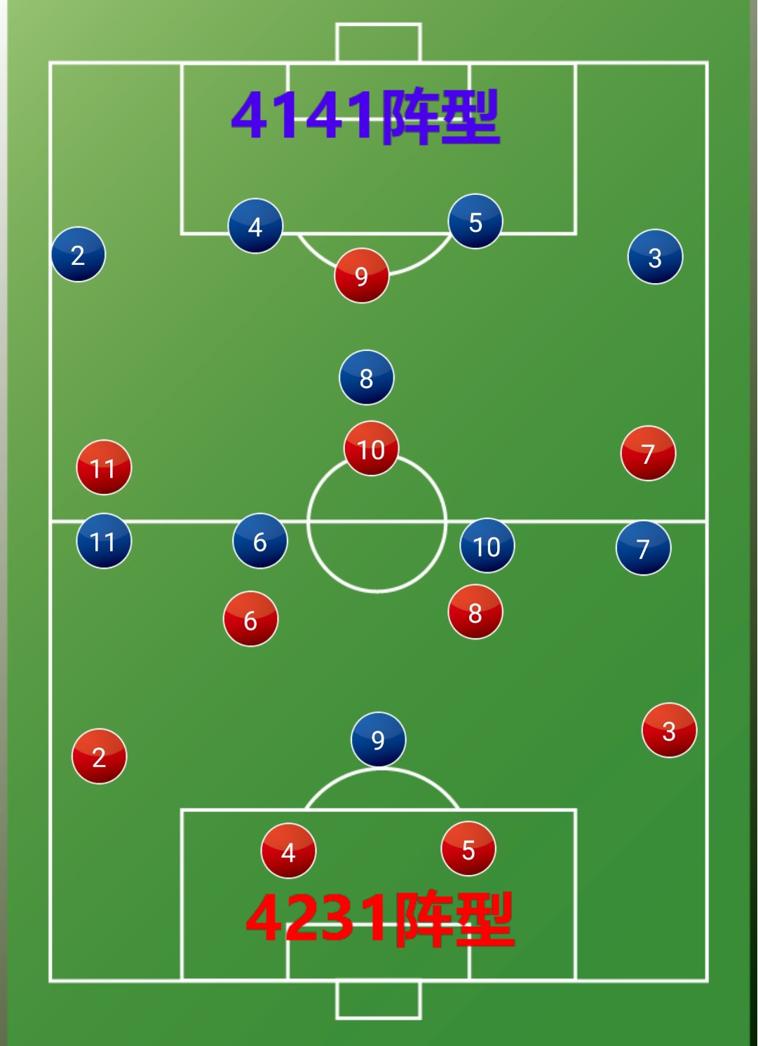 4231阵型在两边路各配置了两名球员若对阵边路较薄弱的对手进攻会比较有利,更容易打开局面 。
