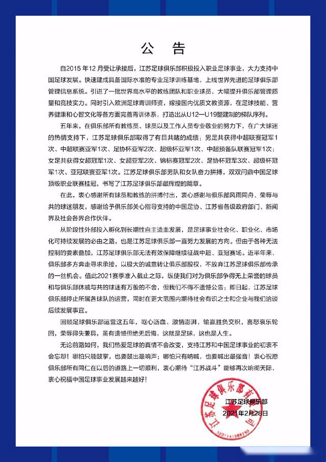 与苏宁的做法不同,同样面临解散的天津津门虎已经开始了善后事宜。根据足球报记者鲁蜜的报道,这支中超老牌俱乐部善后已经率先补发了教练组的薪水,这一点很仗义,毕竟上赛季王宝山指导率领球队力挽狂澜最终成功保级,而接下来俱乐部的工作重点就是逐步补发球员的薪水,这也体现了泰达控股作为国企的担当。而苏宁不仅欠薪严重,而且没有给旗下教练球员补缴税款,这也导致主教练奥拉罗尤不但拿不到欠薪,应得的薪水也因此被冻结无法汇到他的账户。而被欠薪的部分苏宁球员身上还背负着沉重的房贷,有人甚至已经做好了将新房抛售的准备,以避免房贷逾期。