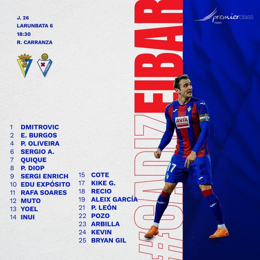 埃瓦尔官方公布了出战当地时间周六客场与加的斯的西甲联赛的大名单,比加斯缺阵。