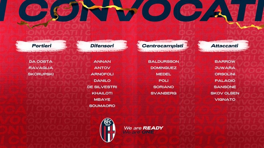 博洛尼亚官方公布了出战客场与那不勒斯的意甲联赛大名单,达尼洛解禁复出。