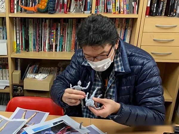 这样完成的开发试制品,权藤先生(上画像)的检查和圆谷制作造型部门LSS的监修,做到可动,外观,站立均能完美呈现为止。
