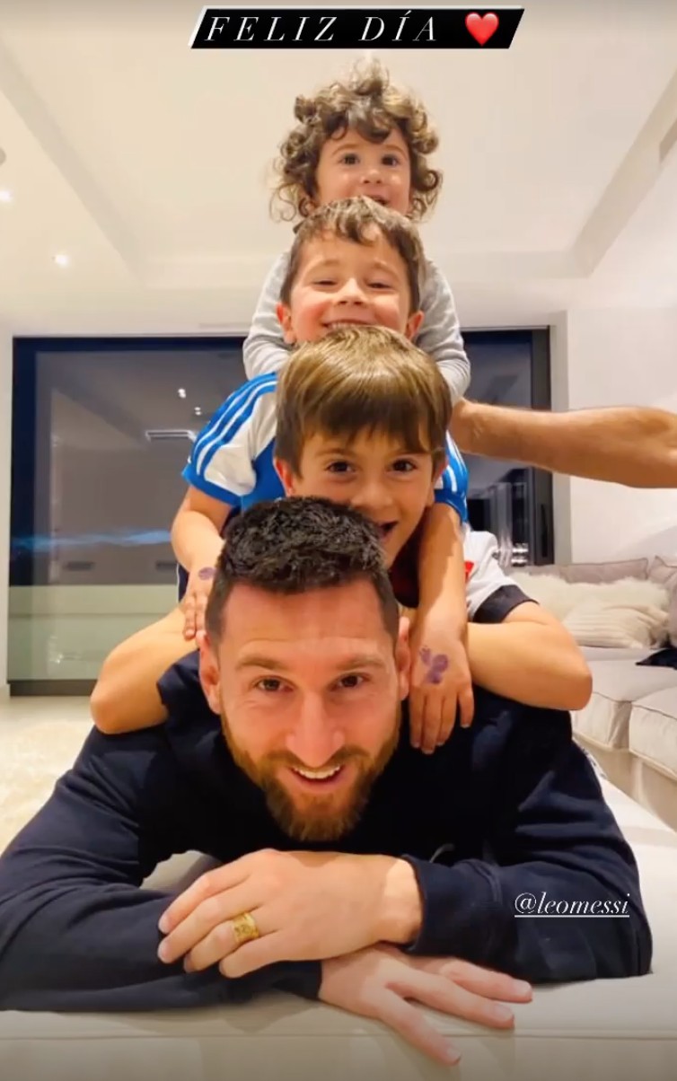今天是西班牙的父亲节,梅西妻子安东内拉在社交媒体上晒出了梅西与三个儿子的合照。