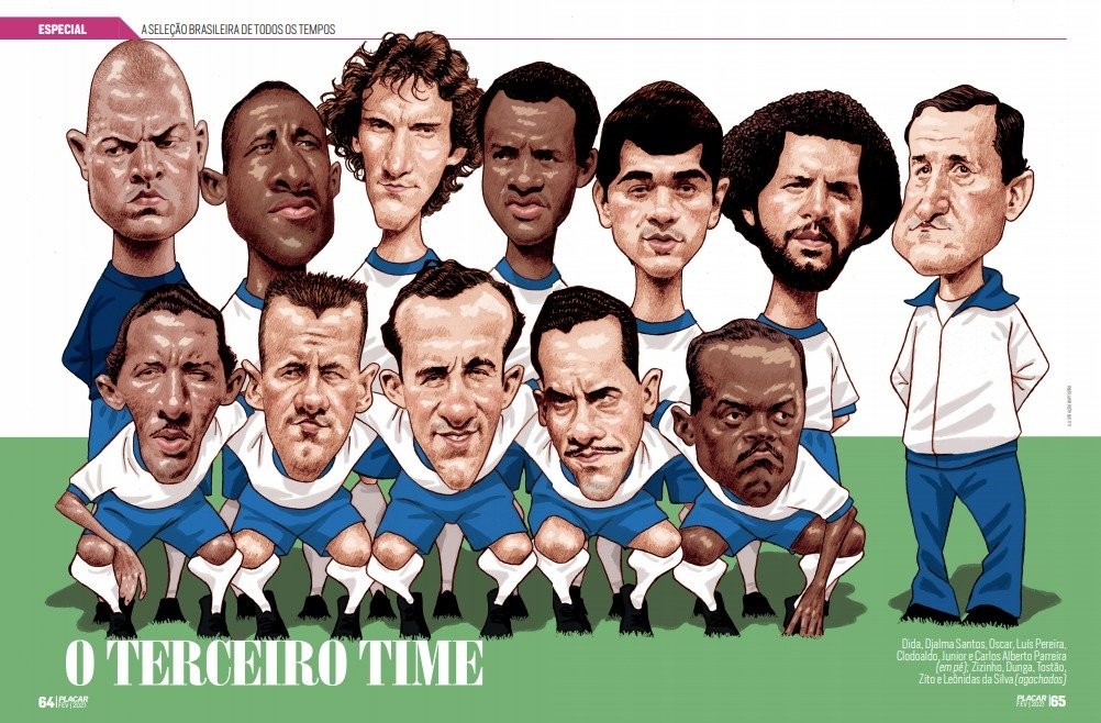 《记分牌》在2月份邀请170名记者、解说员和评论员投票,评选出巴西历史最佳阵容,阵型为433,分为第一阵容、第二阵容和第三阵容,每套阵容还各有一位教练。