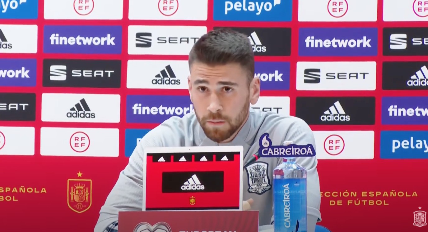 北京时间周一凌晨,西班牙将在客场与格鲁吉亚展开2022年世界杯预选赛第二轮的争夺,门将乌奈-西蒙随主帅恩里克出席了赛前的新闻发布会。