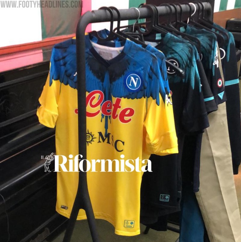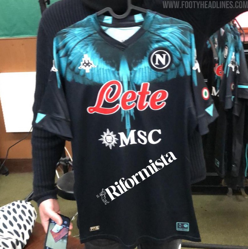 意甲那不勒斯足球俱乐部将与意大利知名时装品牌Marcelo Burlon推出两件联名特别版球衣,如今这两件球衣的谍照已经在网上曝光,配色亮眼且设计感十足。