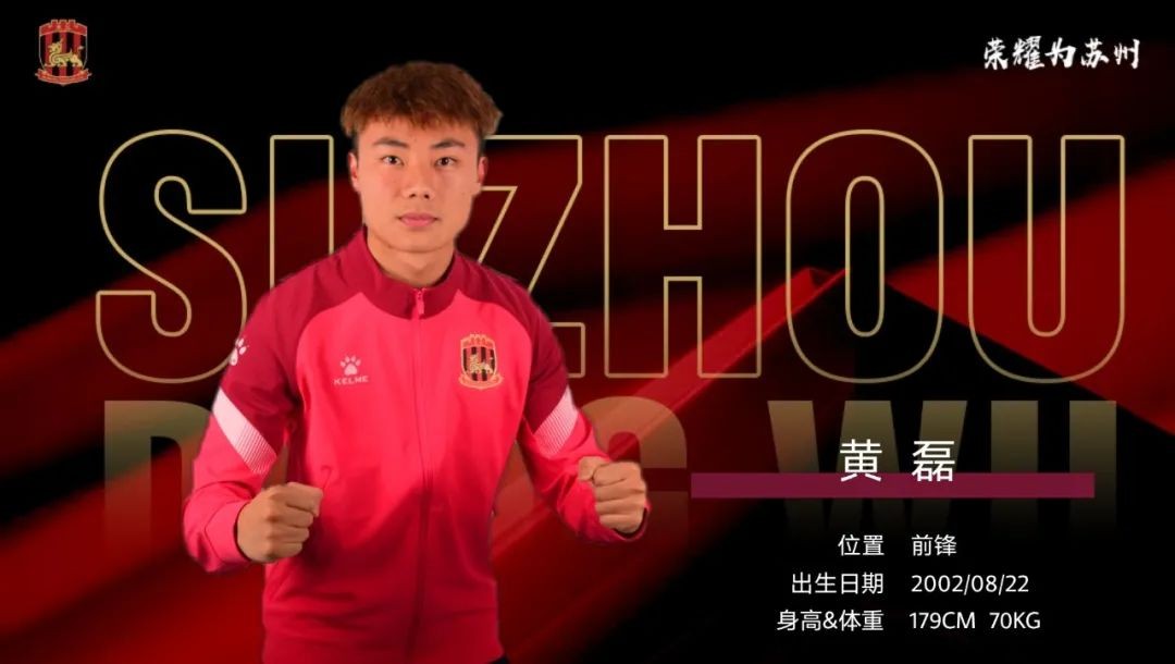 黄磊,2002年8月22日出生;籍贯重庆;身高179cm;体重70kg;司职前锋。曾效力于重庆两江竞技足球俱乐部,2020赛季中期曾租借加盟苏州东吴足球俱乐部。