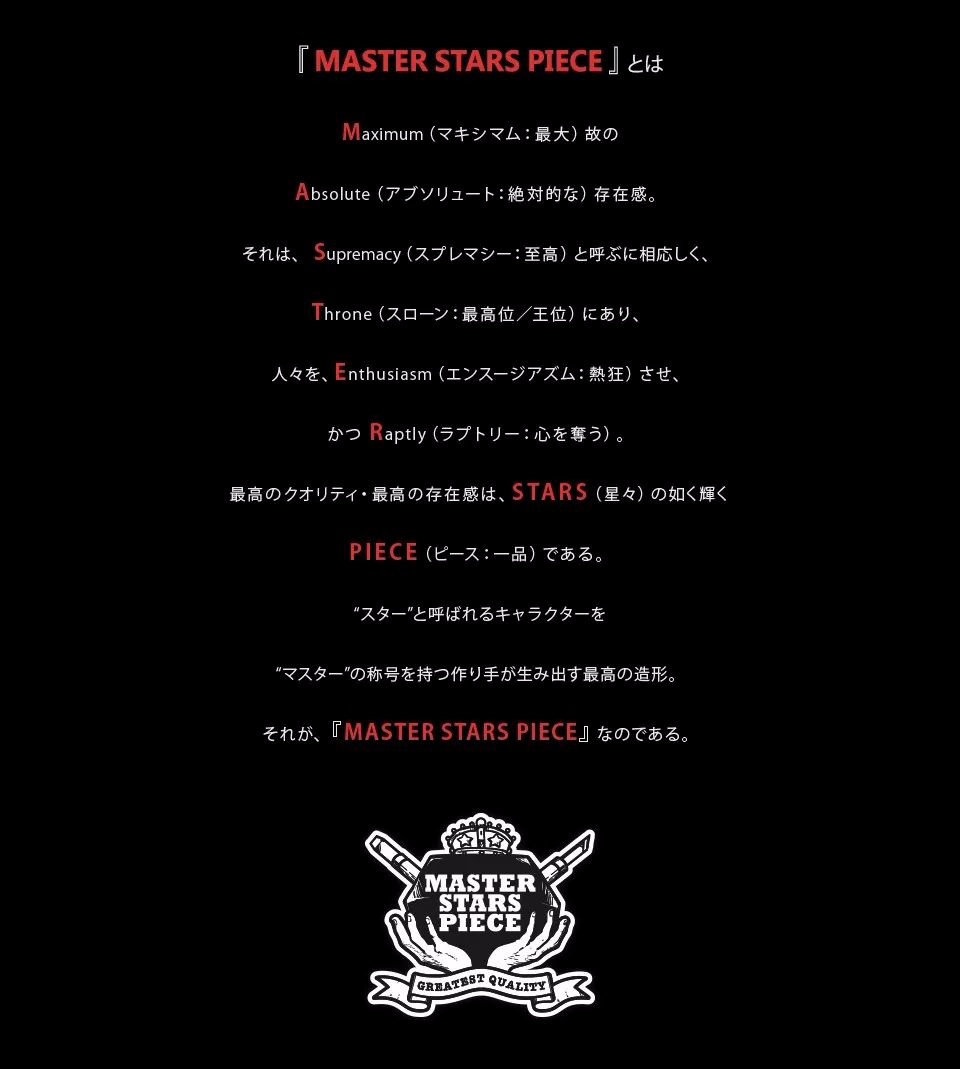 MSP 系列,全称 Master Stars Piece,是由Banpresto(眼镜厂)推出的龙珠景品系列,诞生于2011年2月,涉猎包括热门动漫《龙珠》、《海贼王》、《火影忍者》、《乔乔的奇妙冒险》等男性主角,以超大组立的形式展现动漫中人物造型。曾是红极一时号称“最大规格”景品,后期被子系列SMSP,及GROS等系列超越。