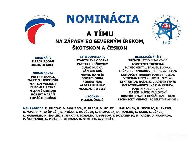 而相比来说,斯洛伐克的锋线则是他们比较弱的一环。效力于德甲科隆队的杜达可以踢攻击型中场和前锋,是球队进攻端的重要角色。另外锋线上出场较多的还有老将杜里什。