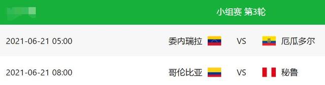 北京时间明天凌晨0点,欧洲杯小组第3轮就将打响,意大利与威尔士争小组第1,土耳其与瑞士争夺出线希望。这2场比赛当然值得熬夜。不过,北京时间明天凌晨5点,美洲杯小组赛第3轮也将拉开战幕,由B组的委内瑞拉对阵厄瓜多尔,随后在上午8点,由哥伦比亚对阵秘鲁。