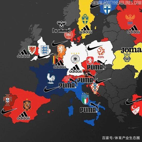 2020欧洲杯球队装备赞助商地图 图片来源:Footyheadlines
