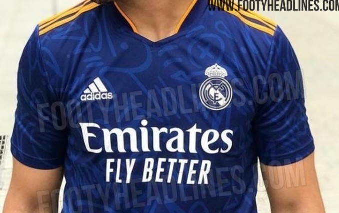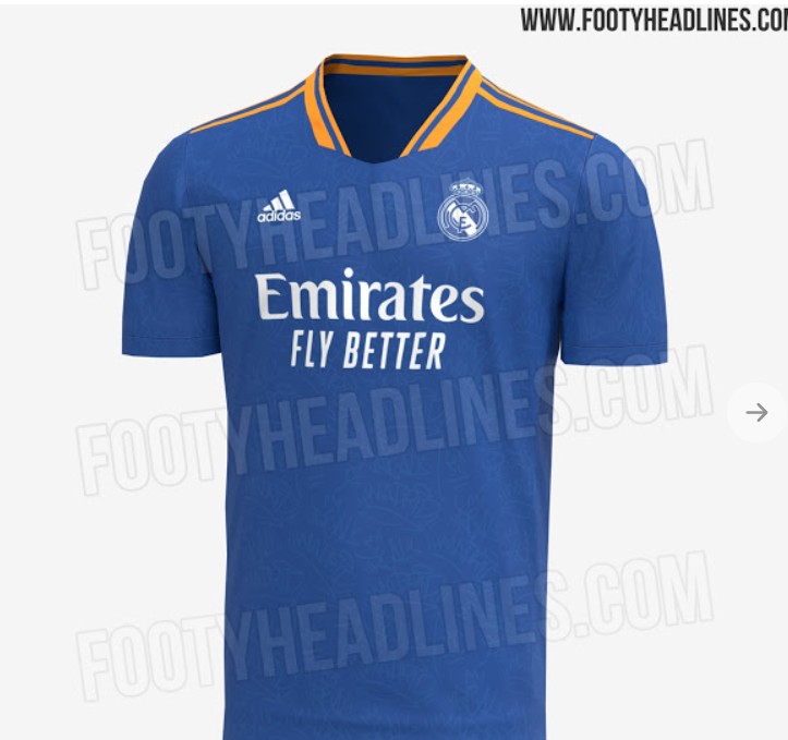 西甲豪门皇家马德里2021-22赛季的客场球衣最近由知名球衣网站“Footy Headlines”在网上透露,皇马新赛季的客场球衣采用深蓝配色,另外搭配有涂鸦暗纹设计。