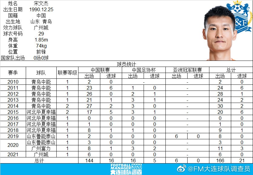 广州城锋线球员宋文杰在球队1-0击败深圳的比赛中首发出场,达成了自己在中国顶级联赛出场100场的里程碑,他也成为第458位达成此项成就的球员,也是90年龄段达成此项成就的第13人(非外援)。