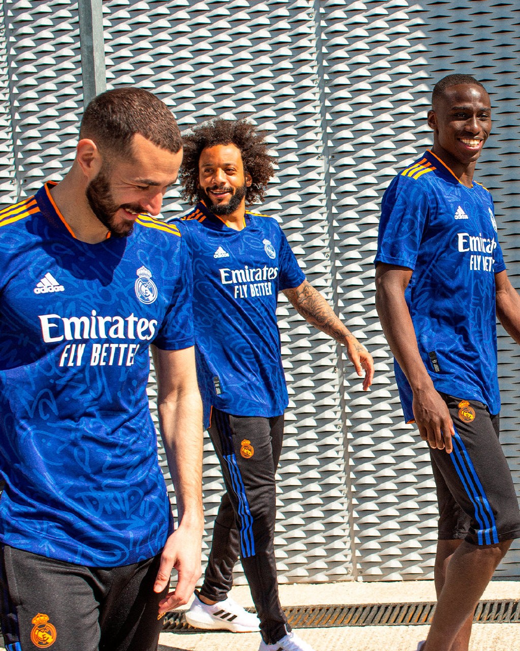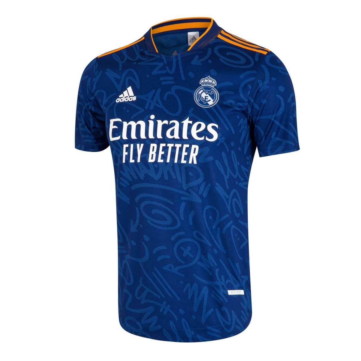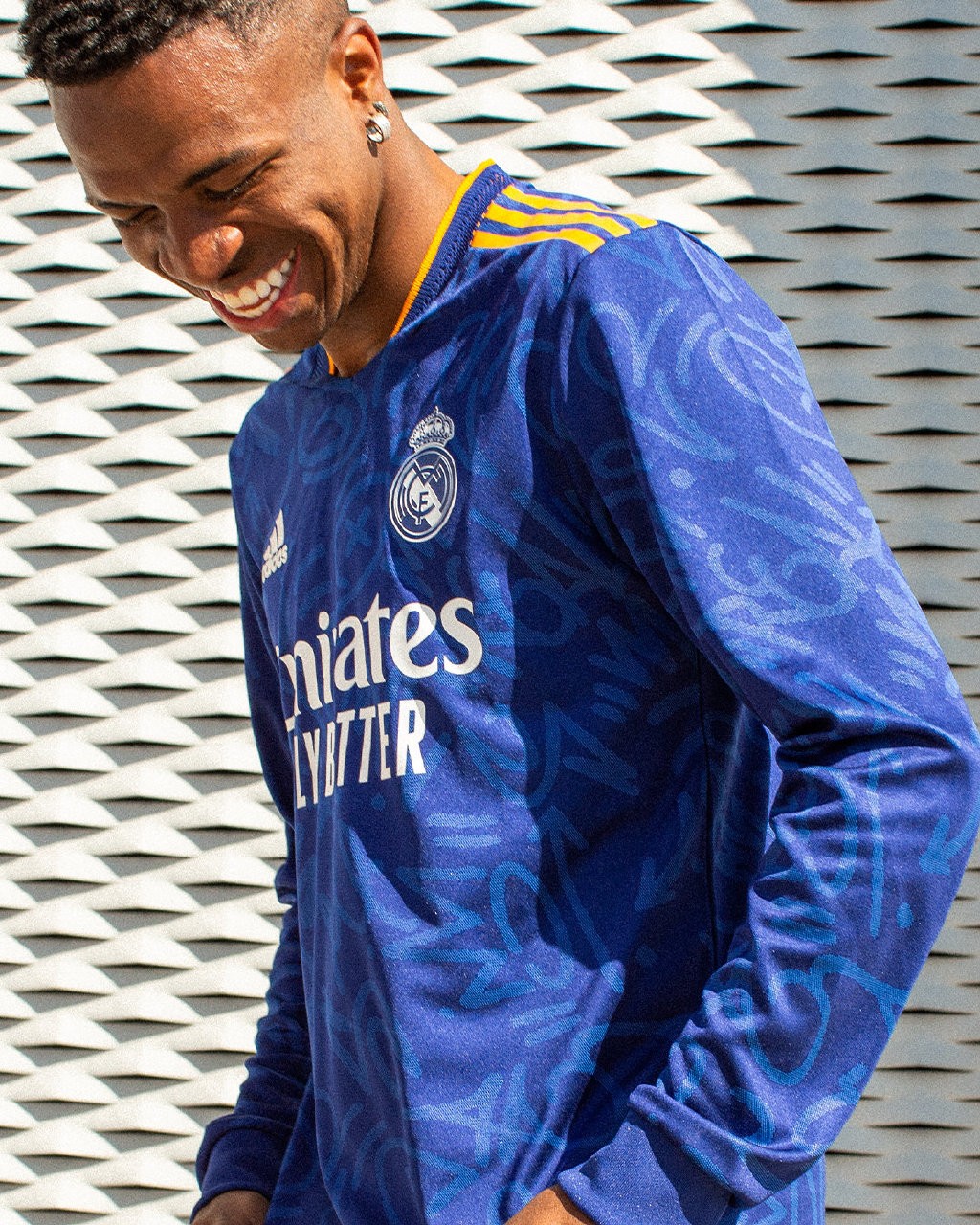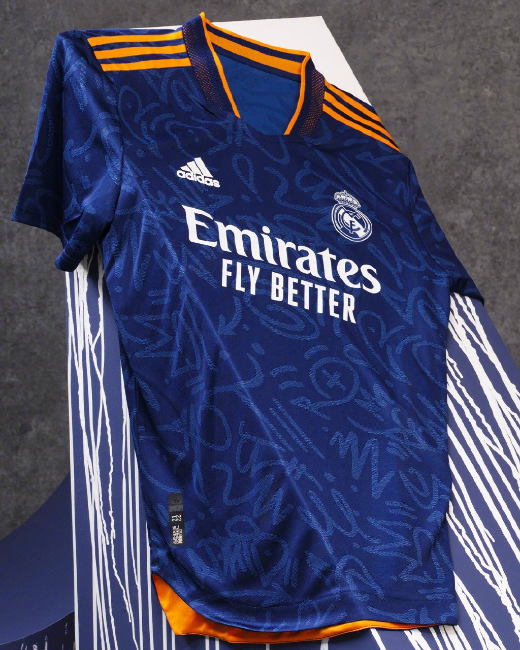8月5日,皇家马德里官方发布了21/22赛季的全新客场球衣,这件球衣以深蓝色作为主色调,并配以随性的涂鸦纹路,颇具创意与艺术感。