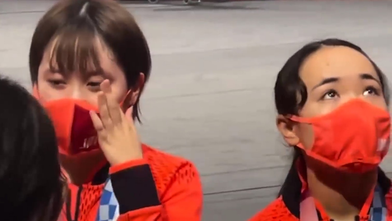 中国女乒在团体赛中击败日本女乒夺得奥运会金牌,伊藤美诚赛后接受采访时再度眼眶蓄泪仰头望天,她表示:确实很想赢得比赛,因而感到非常不甘。