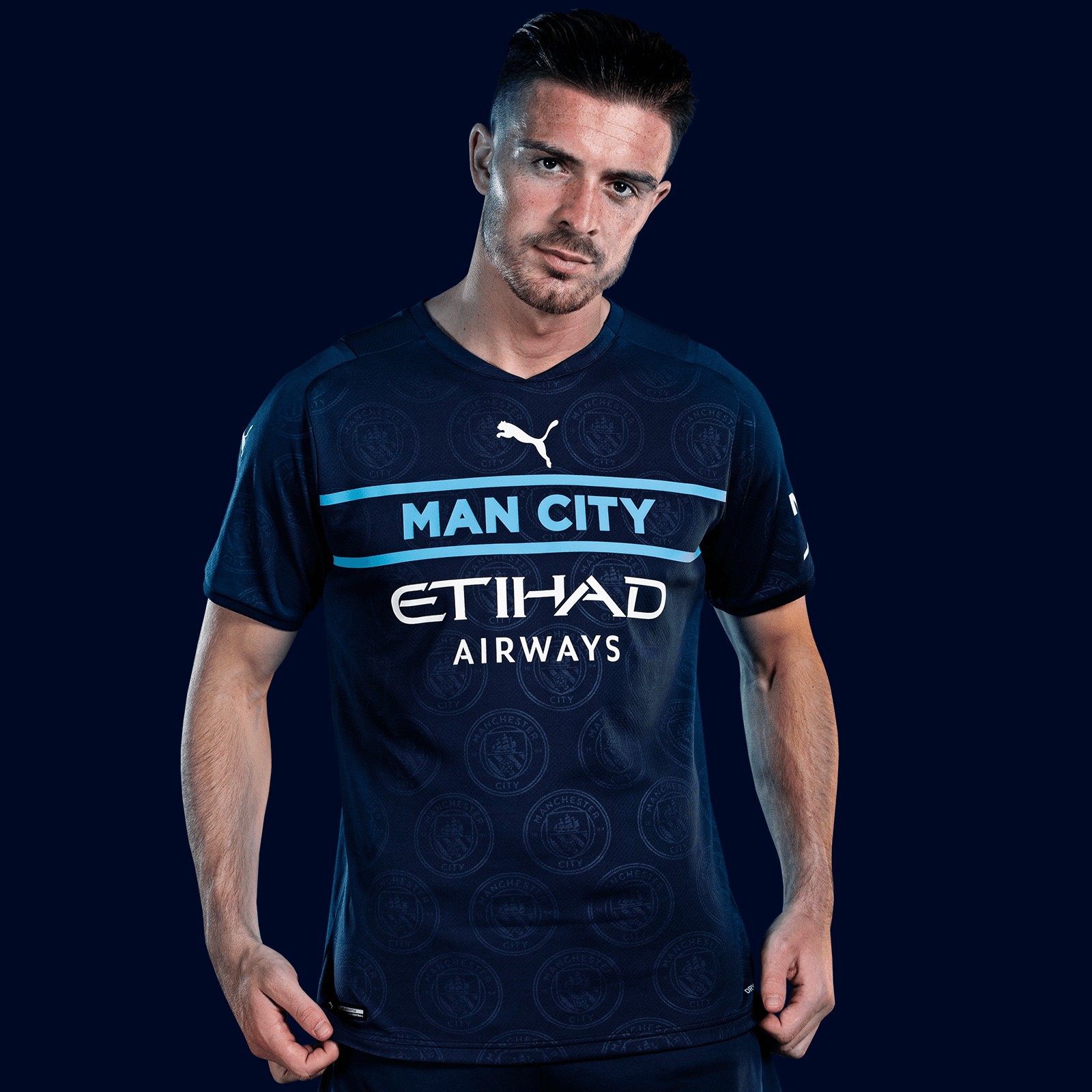 北京时间8月19日凌晨,曼城官方公布了球队在21/22赛季的第三球衣,这件球衣主体为深蓝色,套用了Puma今年的最新模板。