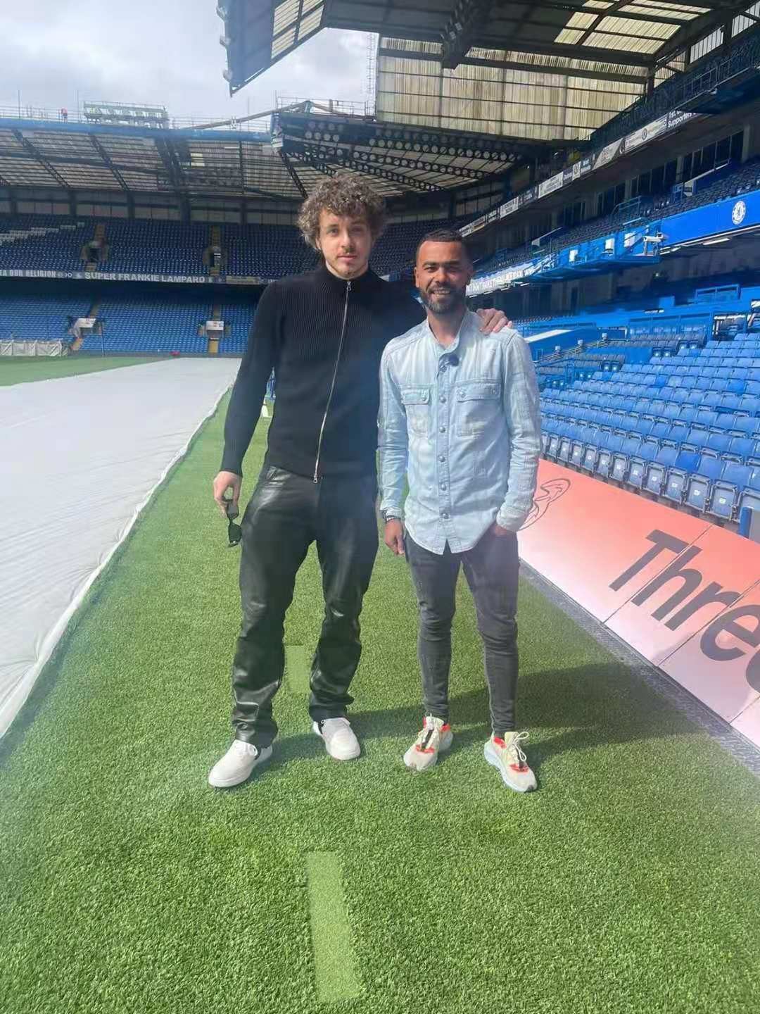 切尔西美国官方在社交媒体发布照片,照片上是球队传奇阿什利-科尔和美国rapper杰克-哈洛(Jack Harlow)的合照。