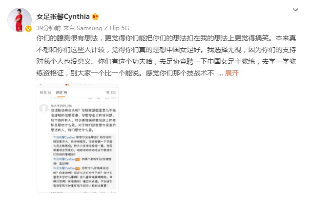 北京时间8月29日,女足国脚张馨在社交媒体上突然发炮,怒怼网友的恶评,但随后又删除了动态。