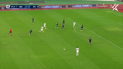 最后我们来到首尔。上轮结束自己多轮不胜的首尔衣恋迎来了大田韩亚市民的挑战,本场比赛前,全南天龙的落败给了大田韩亚市民进一步追赶安养的机会,因此本场比赛他们直接派出了352的阵型,力图一举拿下首尔衣恋。而衣恋方面,本场比赛继续让上轮表现出色的韩义权和金仁成登场。本场比赛上半场,大田韩亚市民占据了主动,但却无法敲开对手球门,这也给球队埋下了隐患。下半场比赛开始没多久,首尔衣恋换上了莱昂德罗加强进攻,他登场仅仅4分钟,莱昂德罗就完成了一次一对一突破,面对对手门将金东俊,莱昂德罗传球给队友,射门被扑出,但跟上的金仁成将球补入空门,1-0!首尔衣恋取得领先。