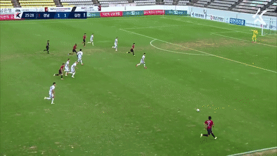 第65分钟,安养的中锋乔纳森在禁区内头球破门扳平比分,但边裁示意进球无效,不过慢镜头显示,乔纳森没有越位,1-1,安养扳平比分。