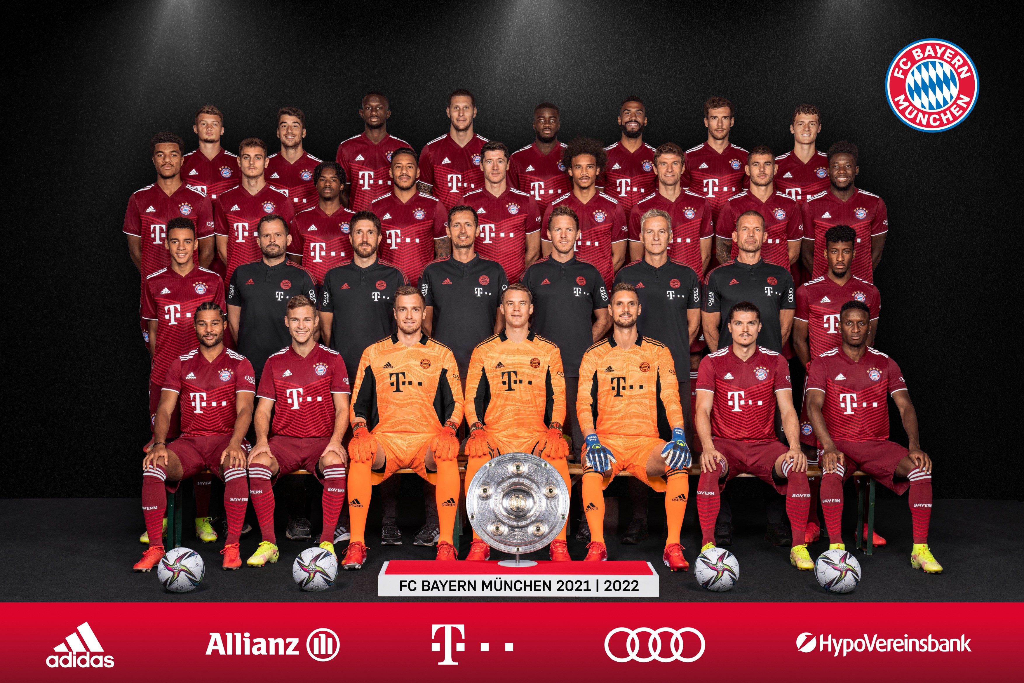 今日,拜仁慕尼黑俱乐部在官方社交媒体上发布了球队2021-2022赛季的全家福。