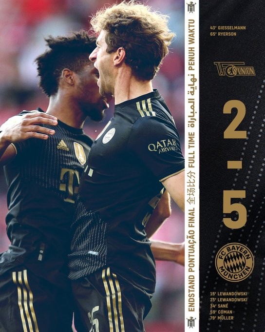 北京时间10月30日晚上,拜仁在客场5-2击败柏林联合,权威数据统计机构WhoScored对拜仁球员们的表现进行了评分,贡献1球3助攻的穆勒当选全场最佳。