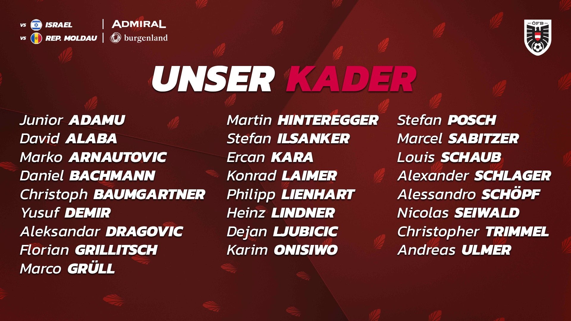 下周新一轮的国家队赛事即将开始,奥地利国家队公布了最新一期国家队大名单。皇马后卫阿拉巴和拜仁慕尼黑中场萨比策领衔。
