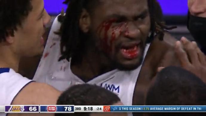 在一次抢篮板卡位的过程中,詹姆斯一拳打在了斯图尔特脸上,后者的面部狂流血。斯图尔特非常愤怒,双方陷入肢体冲突,场面一度十分混乱。