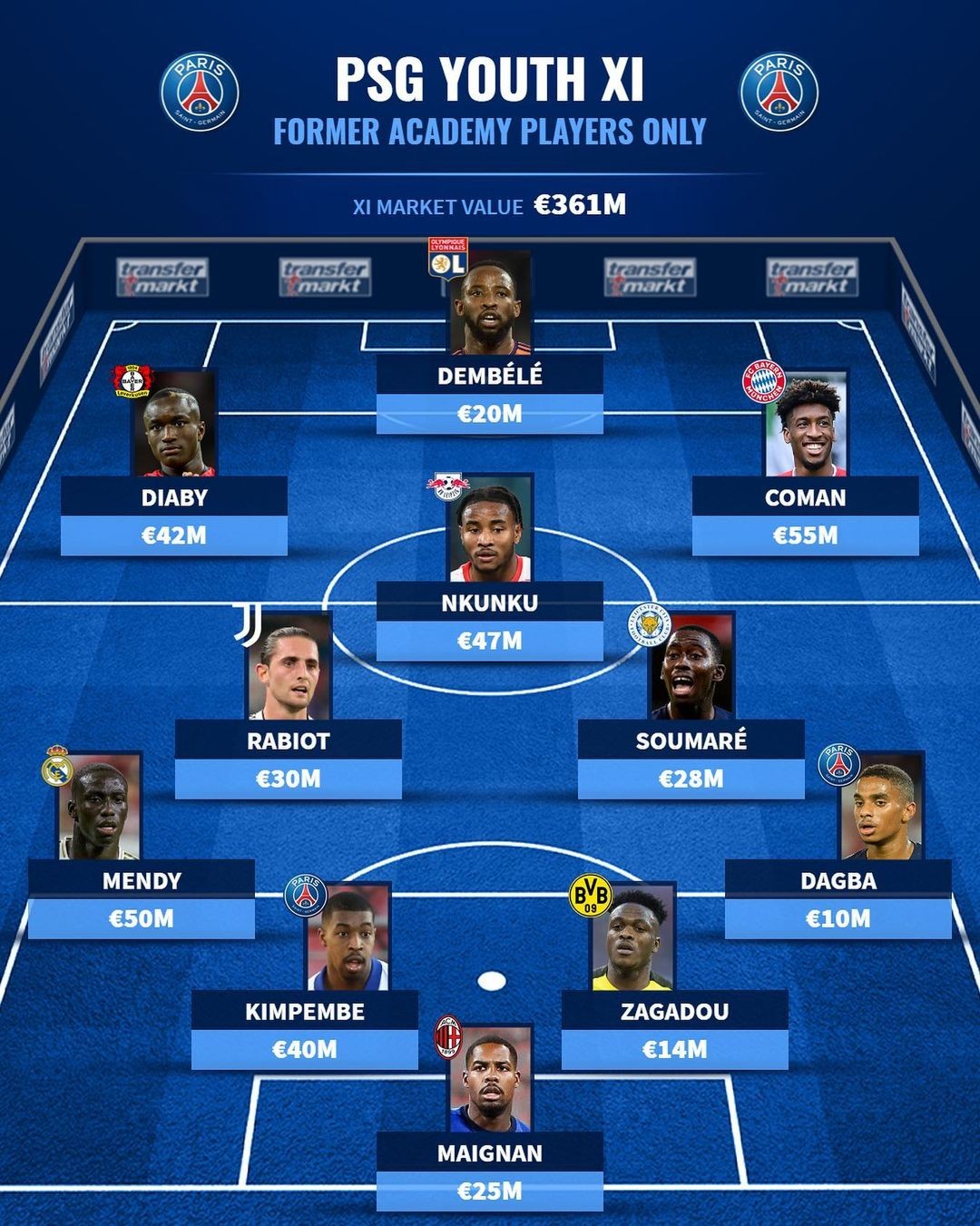 德国转会市场网站评选了巴黎青训出品的现役球员最佳阵容,其中拜仁边锋科曼领衔,皇马后卫门迪在列。